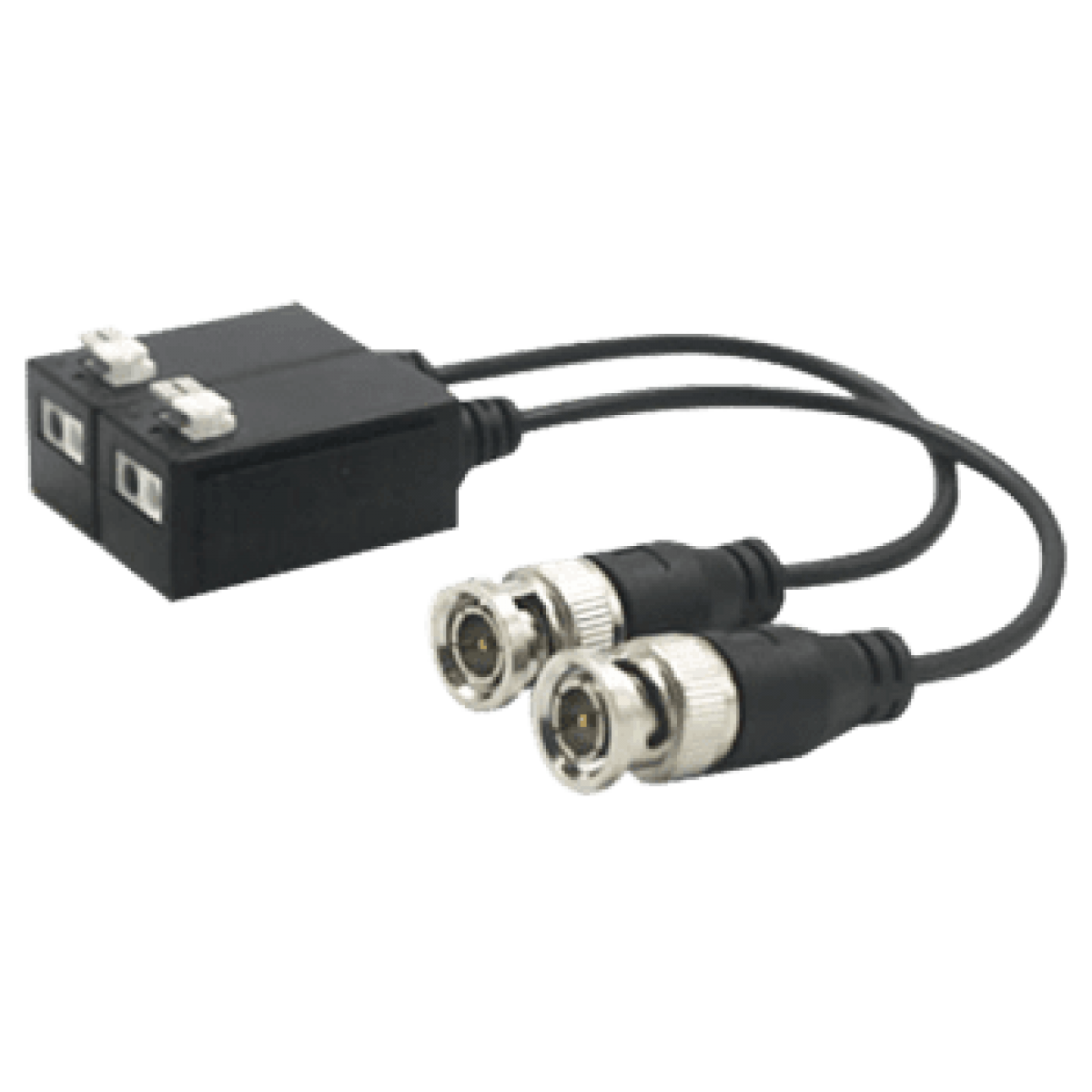 Optimizado para transmissão do sinal de vídeo de 1 câmara de alta definição analógica HDTVI, HDCVI ou AHD através de um par trançado. Dispõe de conector BNC macho e terminal de inserção de cabo por pressão, conector de dois pinos.