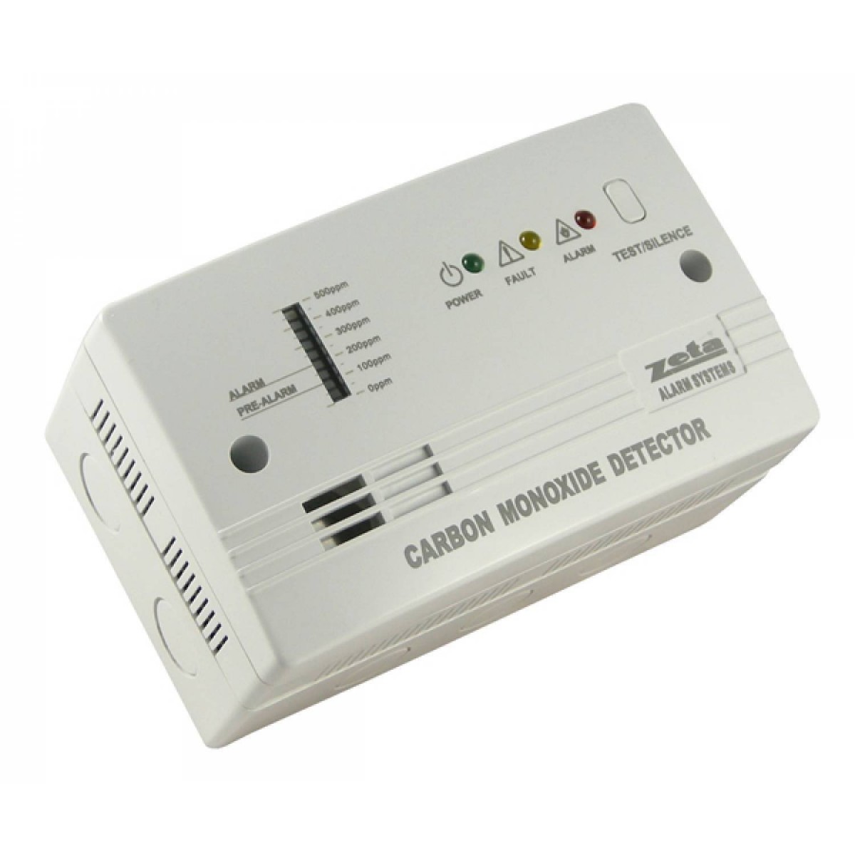 Detetor autónomo de CO concebido para ser instalado em superfície ou encastrado. Incorpora um mostrador de barras para exibir o nível de CO e tem dois níveis de saída materializados em dois relés que operam como alarme de nível 1 (100 ppm) e nível 2 (200 ppm). Paralelamente faculta uma saída de 5 volts e corrente de 200 mA. Tem indicações de falha de alimentação, falha e alarme e uma tecla de controlo para silenciamento e reset.