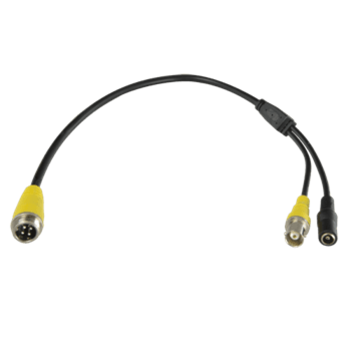 Dispõe de uma entrada macho de BNC para conectar a um videogravador, e 1 saída fêmea de conector de aviação . Permite utilizar câmaras móveis com conector macho de aviação em um videogravador convencional da gama X-Security.