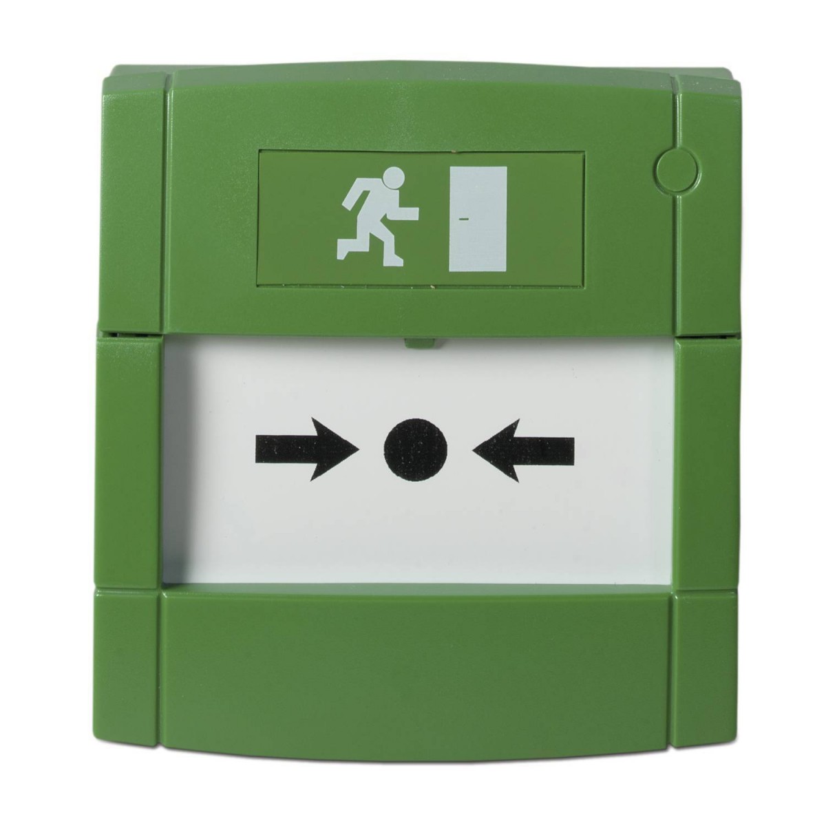 Botoneira manual de comando, quebra de vidro, cor Verde.Caixa de montagem e acessórios não incluídos.