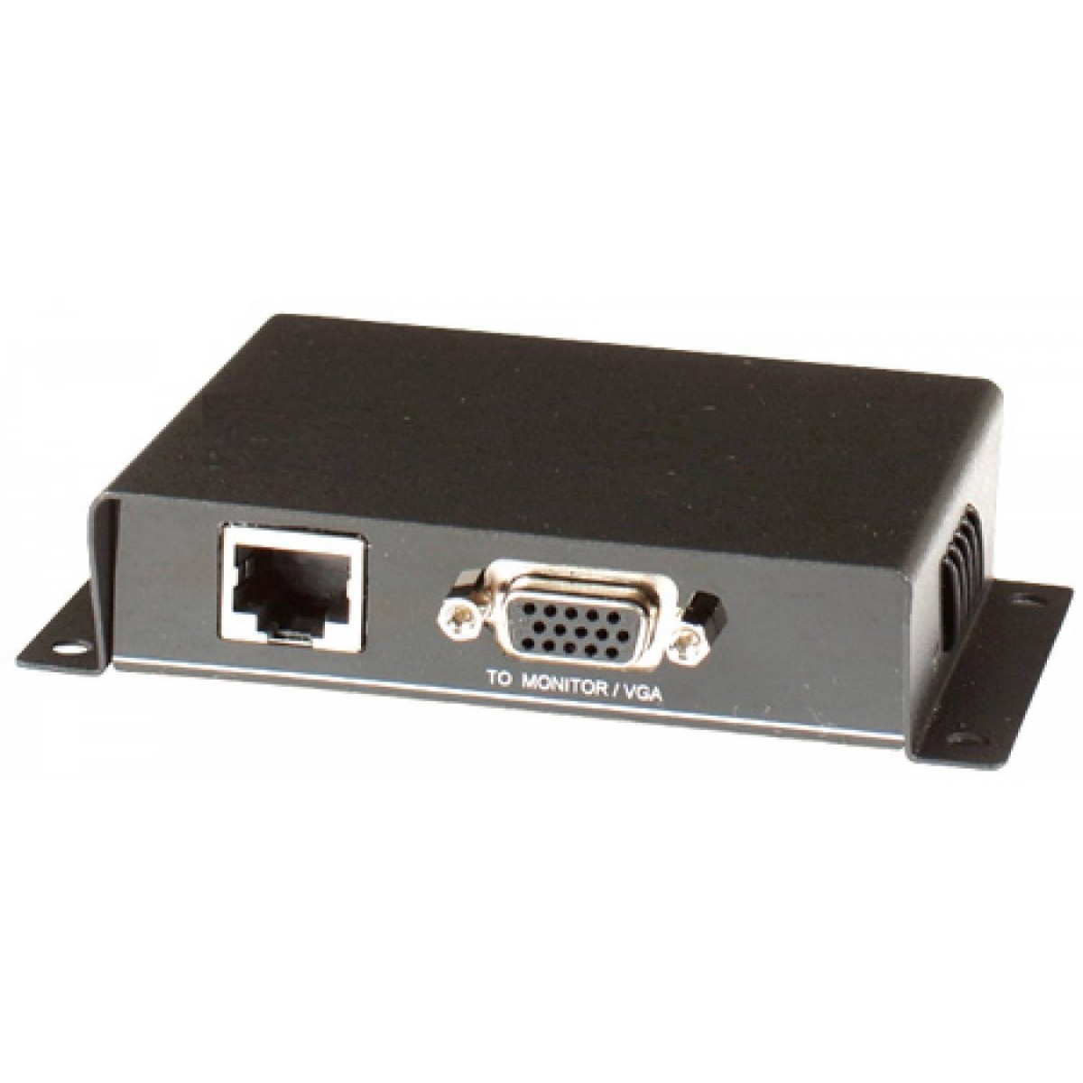 Extensor de sinal de sinal VGA composto por emissor e receptor. Conector VGA para RJ45 fêmea. Utilização de cabo UTP para transporte de sinal VGA até 135 metros. Suporta até 1280x1024 pixels.
