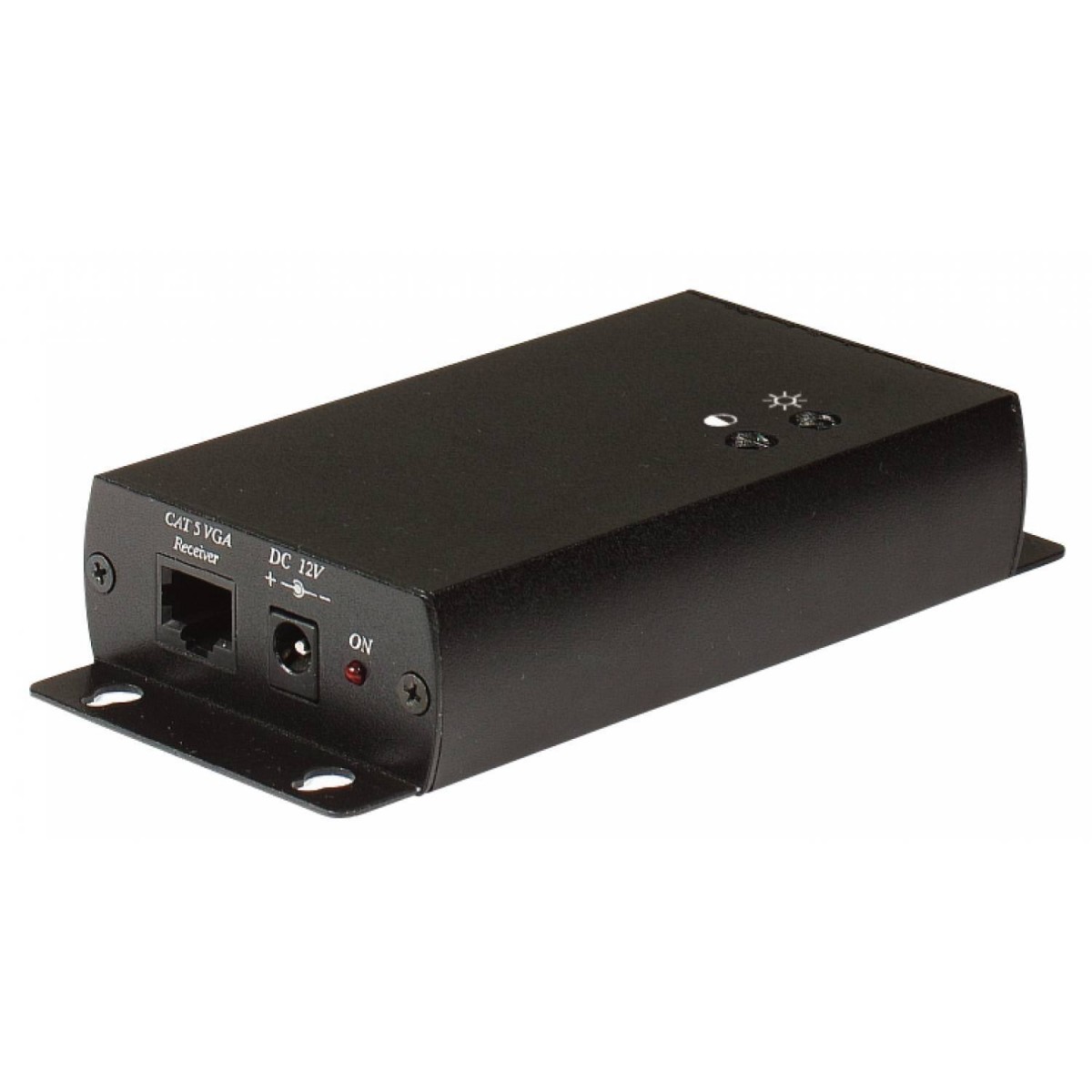 Recetor de sinal VGA através de cabo UTP (cat5) para receção de sinais até 300 metros, dependendo da resolução da imagem. Suporta resoluções até 1600x1200 pixels. Ajuste de contraste e brilho.