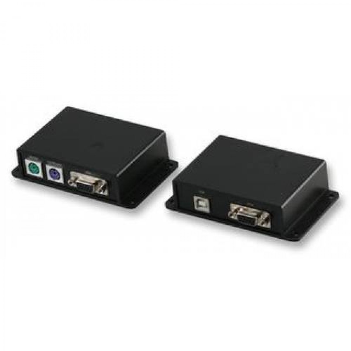 Extensor de sinal VGA, teclado e rato através de cabo UTP (cat5) composto por emissor e receptor com balanceamento e ajuste dos diferentes monitores por dip switch, para transporte de sinais até 100 metros, dependendo da resolução da imagem. Ligação de rato e teclado via USB. Suporta resoluções até 1280x1024 pixels. Não suporta protocolo VGA DDC