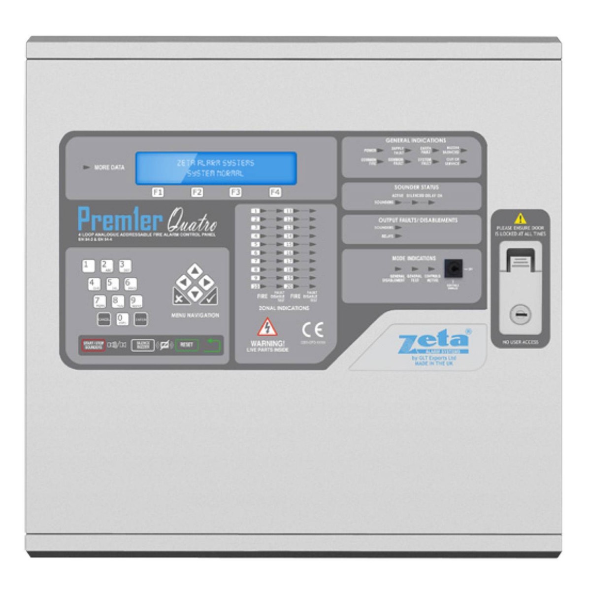 A Premier Quatro é a nova central de alarme de incêndio endereçável com até 4 loops da Zeta Alarm Systems. Versão de 4 loops.