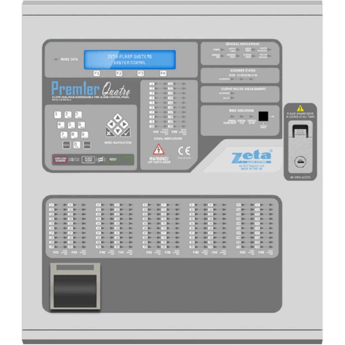 A central de alarme foi concebida e desenhada e testada para cumprir com todos os requisitos da norma EN54 parte 2 e parte 4. Está estruturada de forma modular e pode ser entregue com vários loops. Está igualmente disponível um software para a configuração da central.