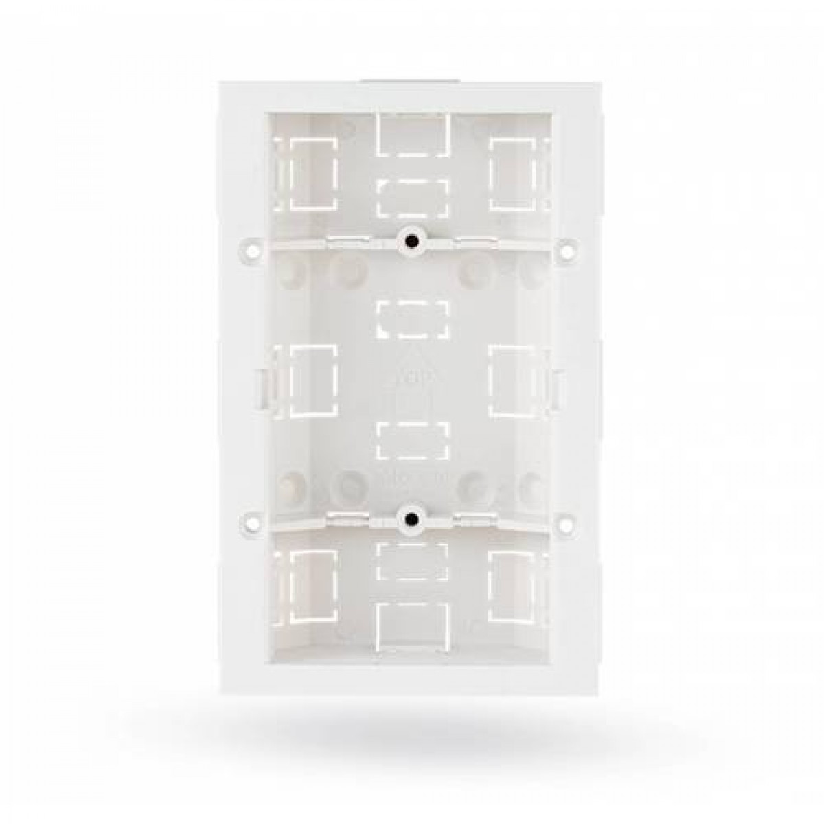 O suporte foi concebido para a instalação de um detetor PIR da série JA-1x2P numa parede de pladur ou de tijolo. Graças a este método de instalação, o detetor fica parcialmente embutido e enquadra-se na parede de forma muito elegante.