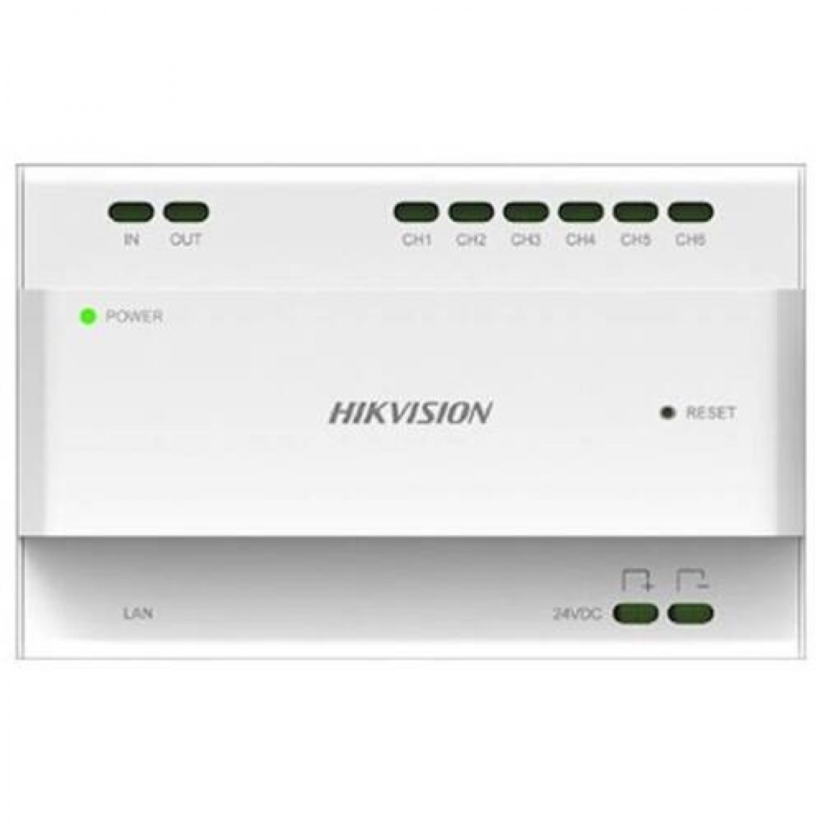 Distribuidor em cascata de 6 saídas, 1x RJ45, 8x LEDs, 24VDC. Apenas compatível com o DS-KAD706